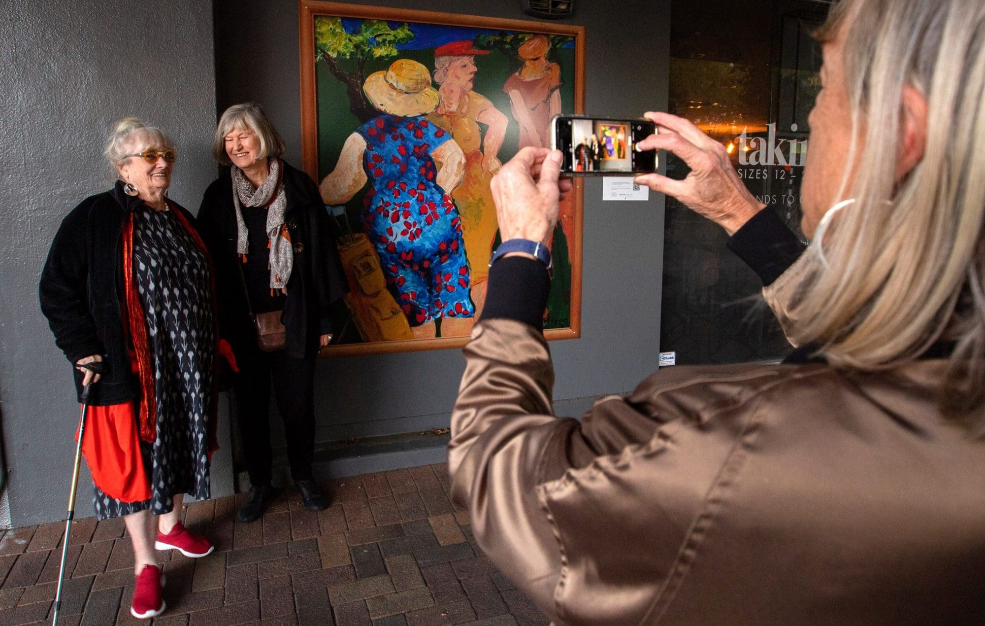 Jane Evans' Ladies Day captures a day on the green, with one woman focused on her putting, another being the imperious observer, and then the chatterer, with her back to us.