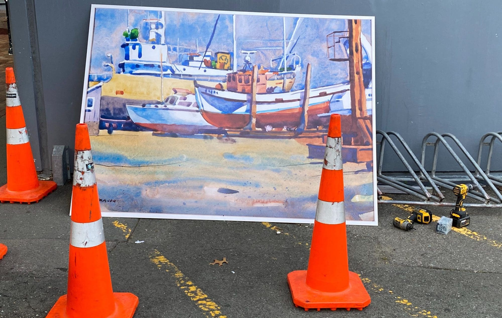 Nelson’s port and marina provided Irvine Major with a wealth of interesting subject matter – including these colourful vessels on the slipway.
