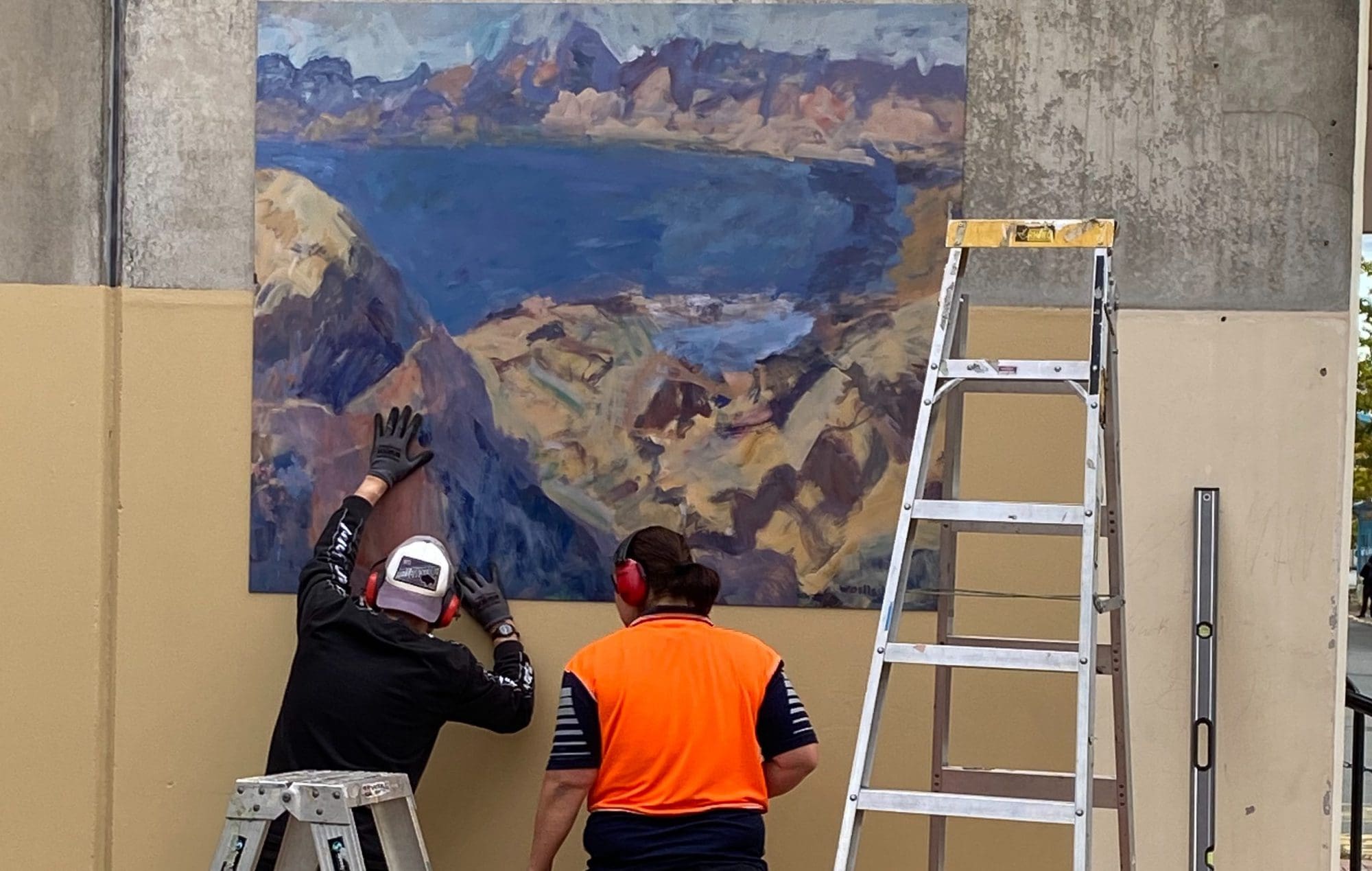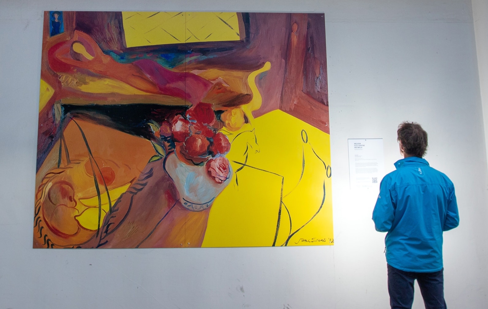 This painting refers to the Māori name for The Suter Art Gallery: Te Aratoi o Whakatū. Ara is pathway. Toi relates to art and knowledge. Te Aratoi o Whakatū: the pathway to art in Nelson.