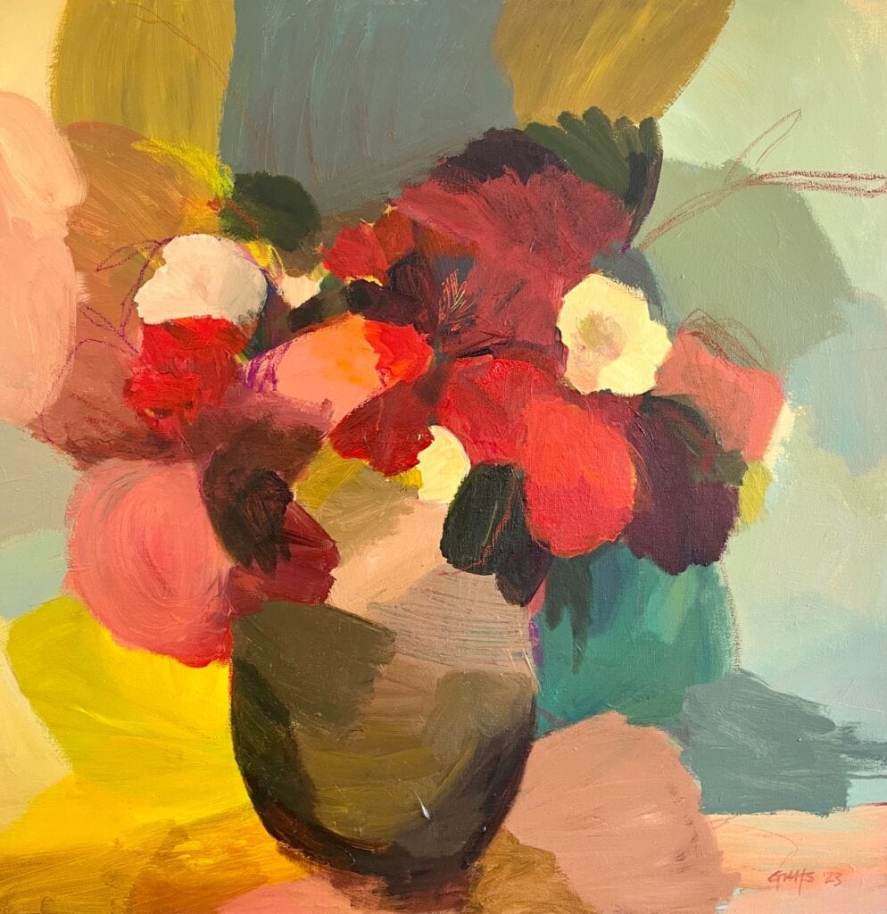 I am influenced by abstract expressionism (William DeKooning, Franz Kline), gesturalism and the Fauves (Matisse, Cezanne, Gaugin) and Mid-Century British art (Ivon Hitchens, Mary Fedden); contemporary fashion and interiors.