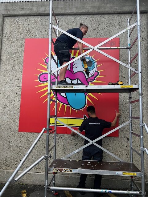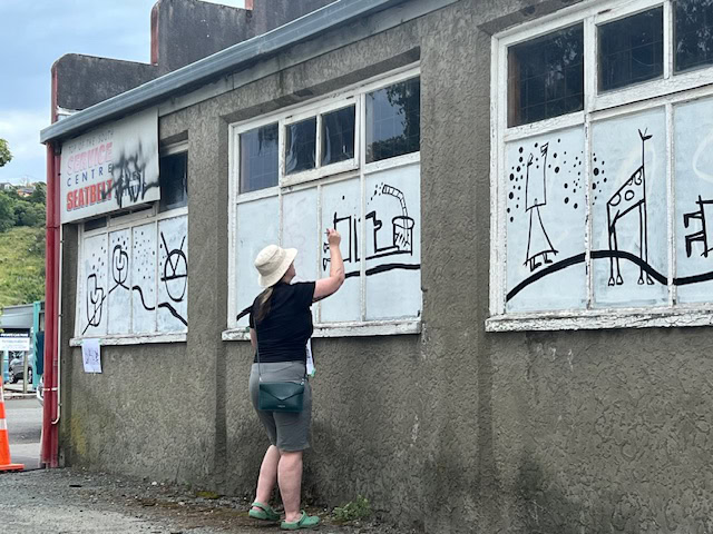 The two hour mural was completed by Anne Rush, Brian Riley, Hélène Kösem and Audrey Anderson from Make/Shift Spaces; Pete Rainey from Rockquest; Alan Gray, Liz Gavin and Jo Kearney from Boffa Miskell; and Sonia Walker and Helen Riddell.