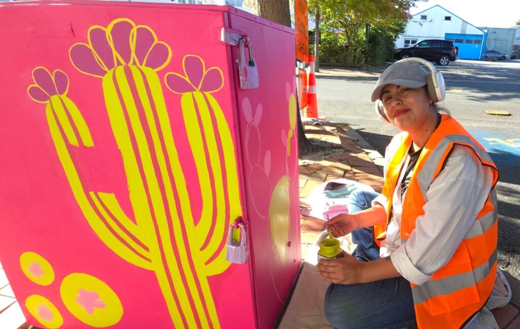 This hand-painted mural investigates patterns as structural and conceptual frameworks. The artwork plays with the effect that repetition has on the viewer, and the way that abstract shapes generate meaning that is open to personal interpretations and context. It aims to prompt a critical awareness of the patterned structures that shape our urban environments and […]